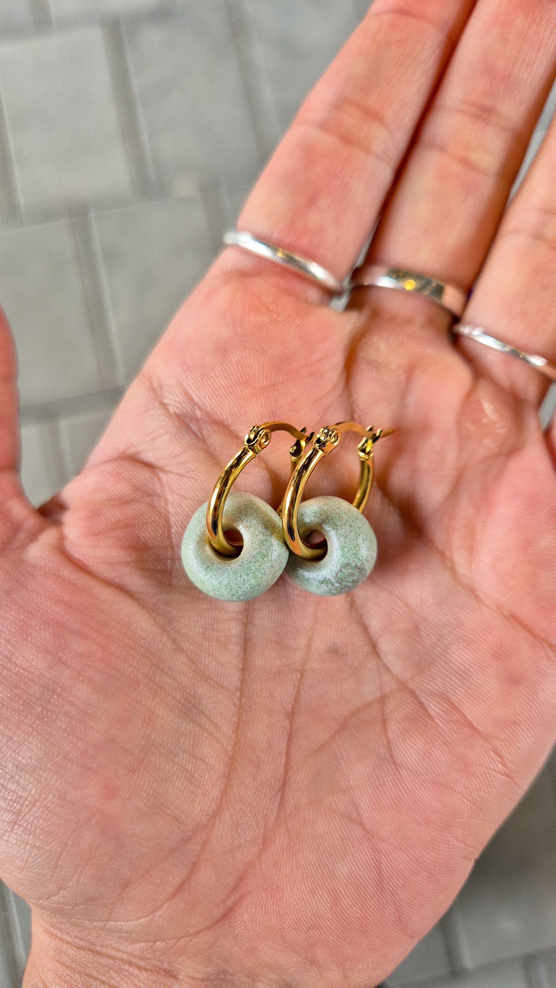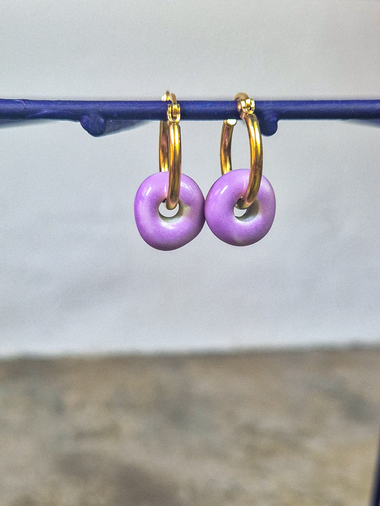 These donuts are light and hung on gold or silver coloured stainless steel.
