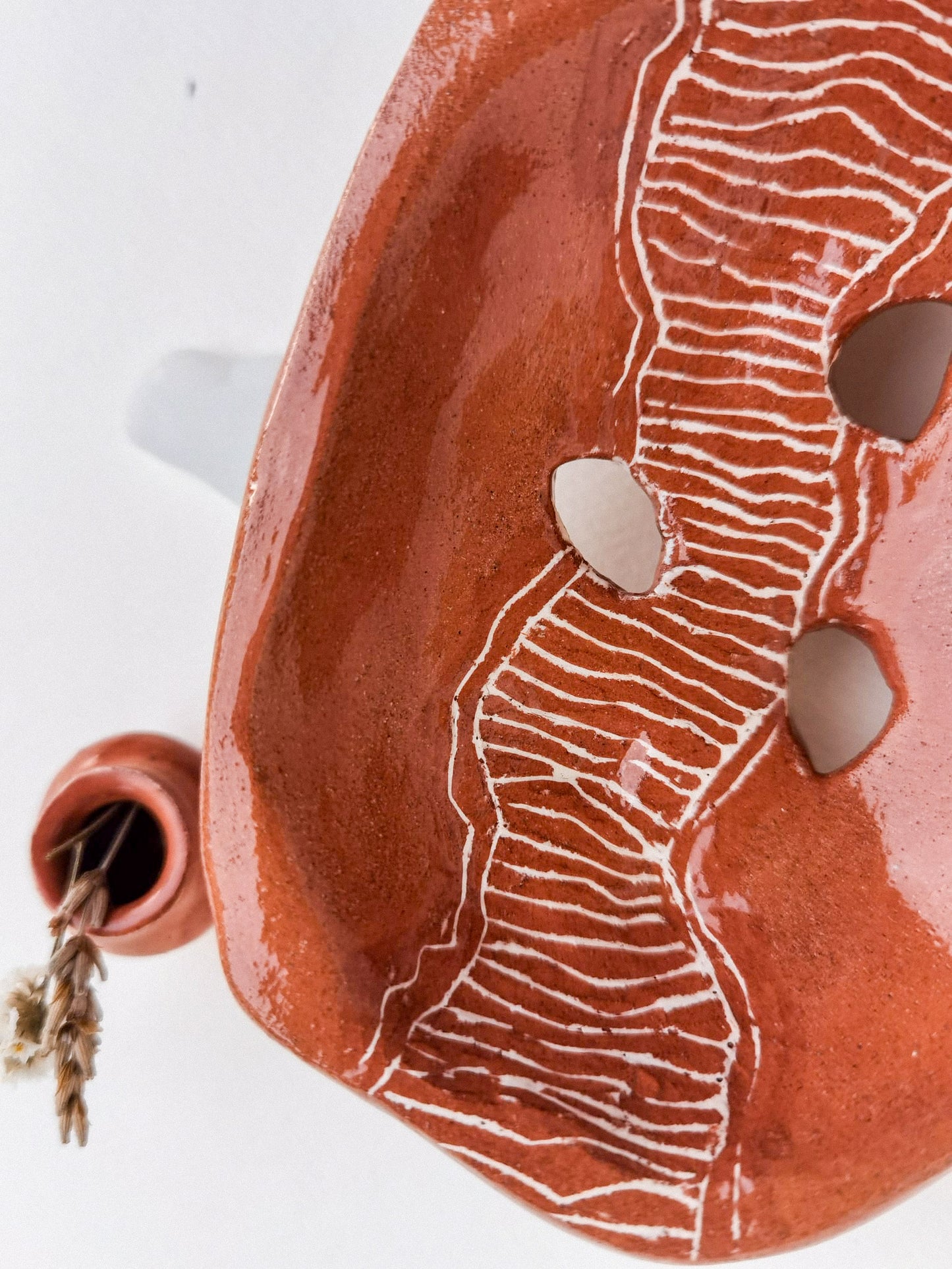 An organic shape to hold your favourite soap bar. It has holes so that the soap juice can flow down into the sink.